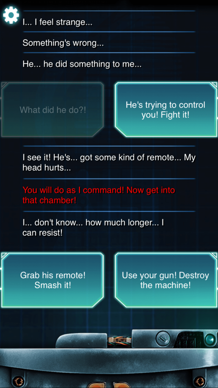 This time-constraint presents an interesting challenge, because if players aren’t feeling hooked by the story, they will not return later to continue the story. Similarly, players who have also been away for that long might not remember what happened previously during their last game session. One of the ways we solved this problem was letting the player scroll-back through all of the text messages that they’ve seen at any time. Once players completed the game, they had an entire record of everything they did so far, including showing which choices they did not select. Players could then easily “rewind” the game to any choice point and make different choices, allowing them to experience multiple endings without having to entirely replay the game from the beginning.