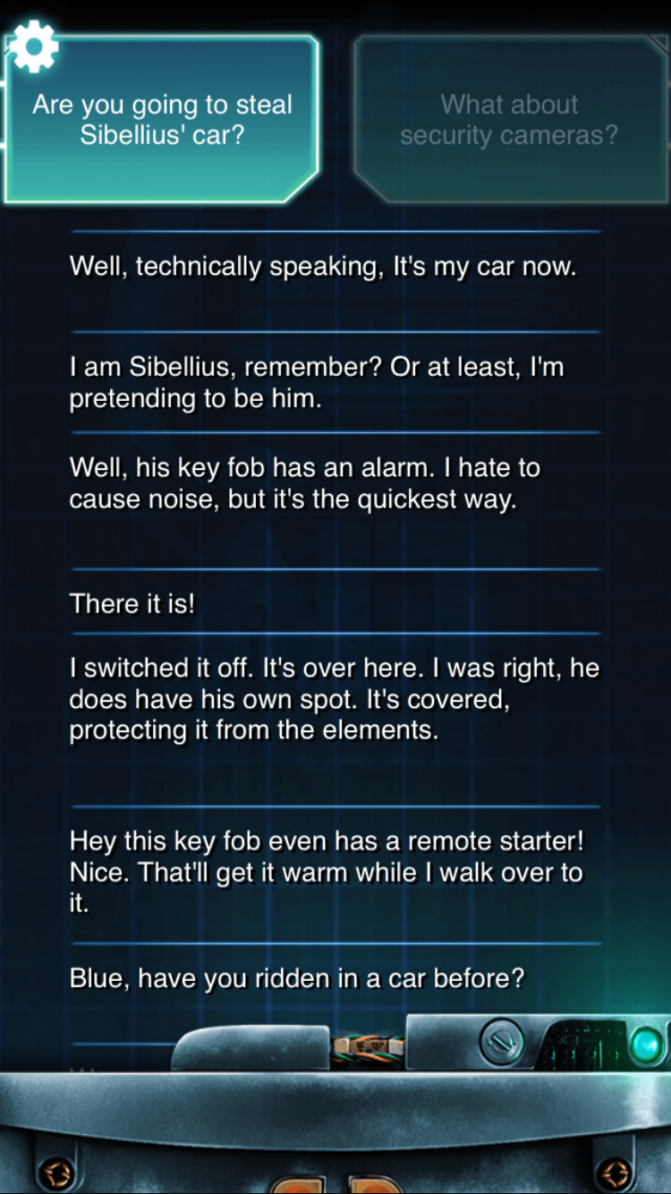 After the success of the first Whiteout game on both Android and iOS, I was invited back to help Mladen develop two sequels, Lifeline: Whiteout 2 and Lifeline: Whiteout 3. Again, I was responsible for editing all of the text and providing addition story direction and feedback as necessary, including coming up with backstories for a few minor characters and revamping the dialogue and choices throughout. Whiteout 2 was a pilot game in Big Fish’s Lifeline Universe project, in which players were given a free first chapter and asked to pay to unlock subsequent chapters. Chapters 1-4 were fully released, but this project was cancelled before it came out of open Beta and Whiteout 3 never made it past the initial editing of the few opening chapters. Regardless, this was my favorite project that I worked on at Big Fish as it was a delight to delve deeper into Adams’s world and connect more deeply with the players. To this day, I’m still contacted by Whiteout fans asking me if more chapters will ever come out. I’m grateful that my work has left such a impact on them that they would reach out and ask for more. That’s the biggest compliment any author can receive.